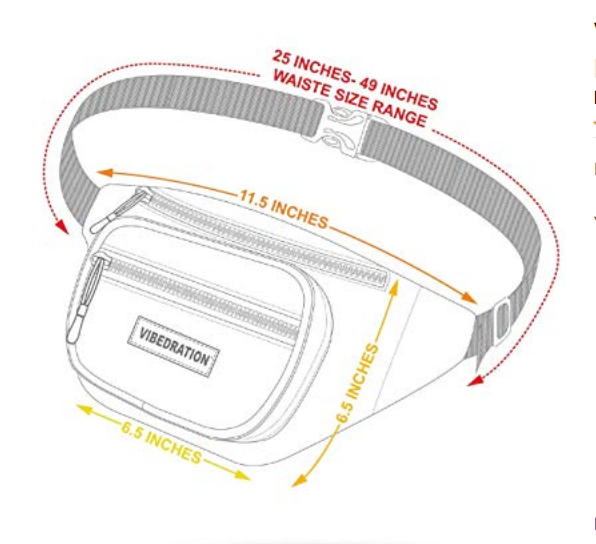MODEL ITEM # H0004 Product Detail: Adjustable strap accommodates waists up to 49" inches! Main pocket 8" x 3" x 2" Front pocket 6" x 2" x 1" Extra back pocket 6.5" x 4" x 1.5" to secretively stash any valuables Material: Water-resistant HEX2o material |
