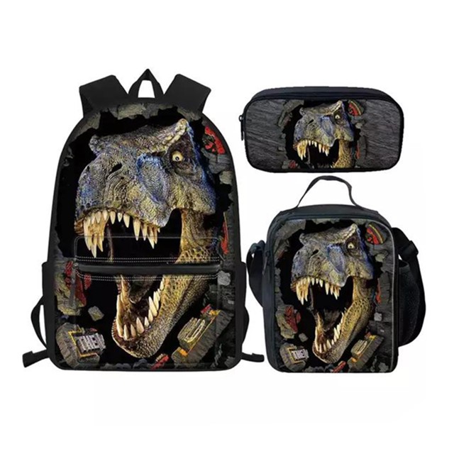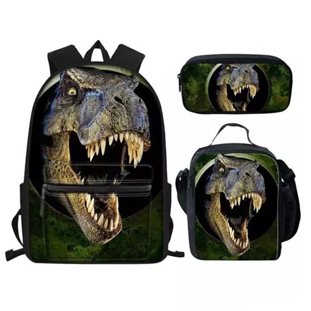 T-rex Dinosaur School Bags Set 3Pcs Teen Boys Students Book Bag with Lunch Box Pen Case / item # RF01-46
