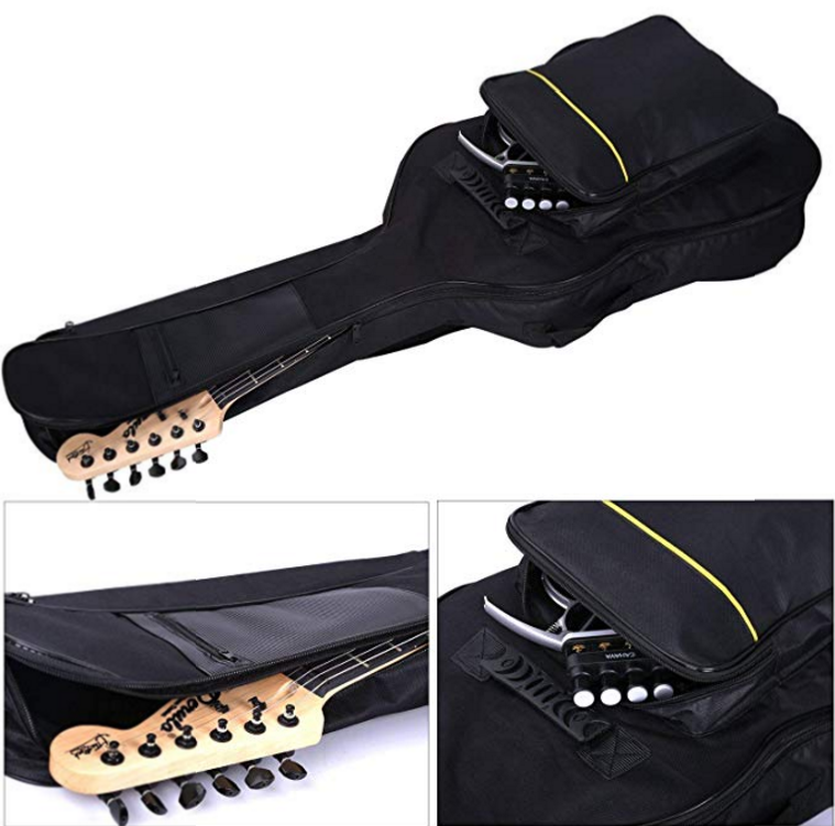 Two exterior pouches: one on front body and one on neck; can fit sheet music, documents, music books, accessories (pedals, adapters, cables, tuners, etc.)